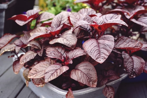 - Daun berwarna merah, ungu, atau merah kehijauan